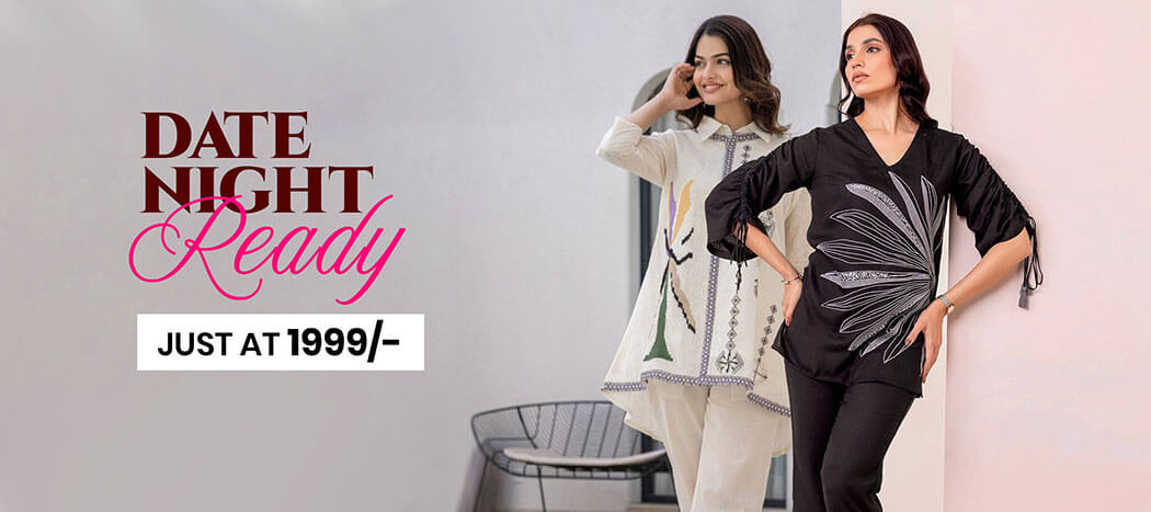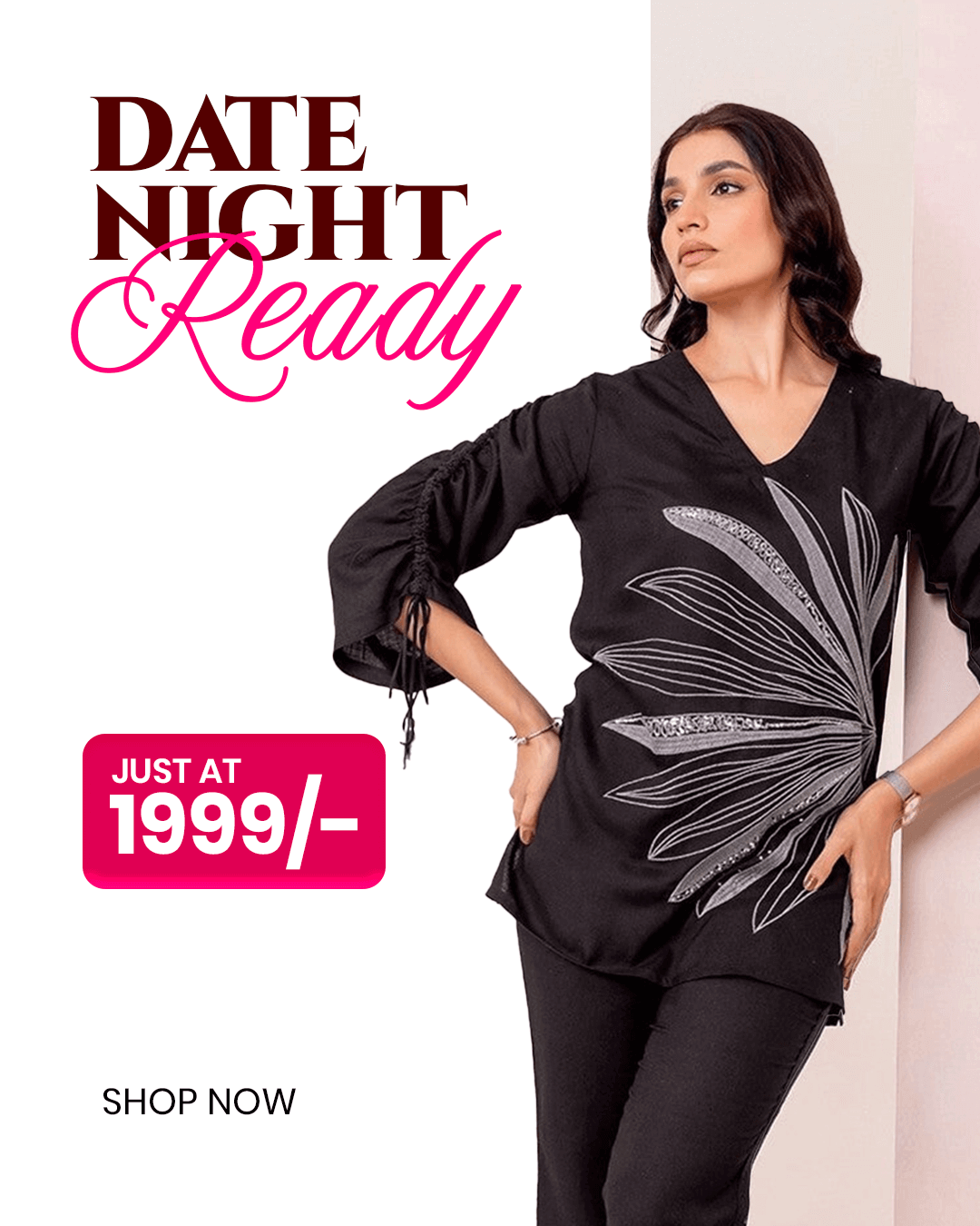 Off White Patch Embriodery Round Neck Top with Pant Coord Set for Women