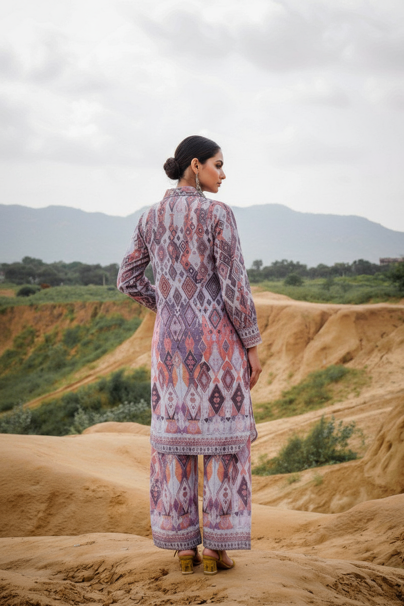 Women Multi Colour Diamond Printed Linen Co-ord Set