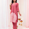 Rust Cotton Flower Applique Embroidered Kurta Set