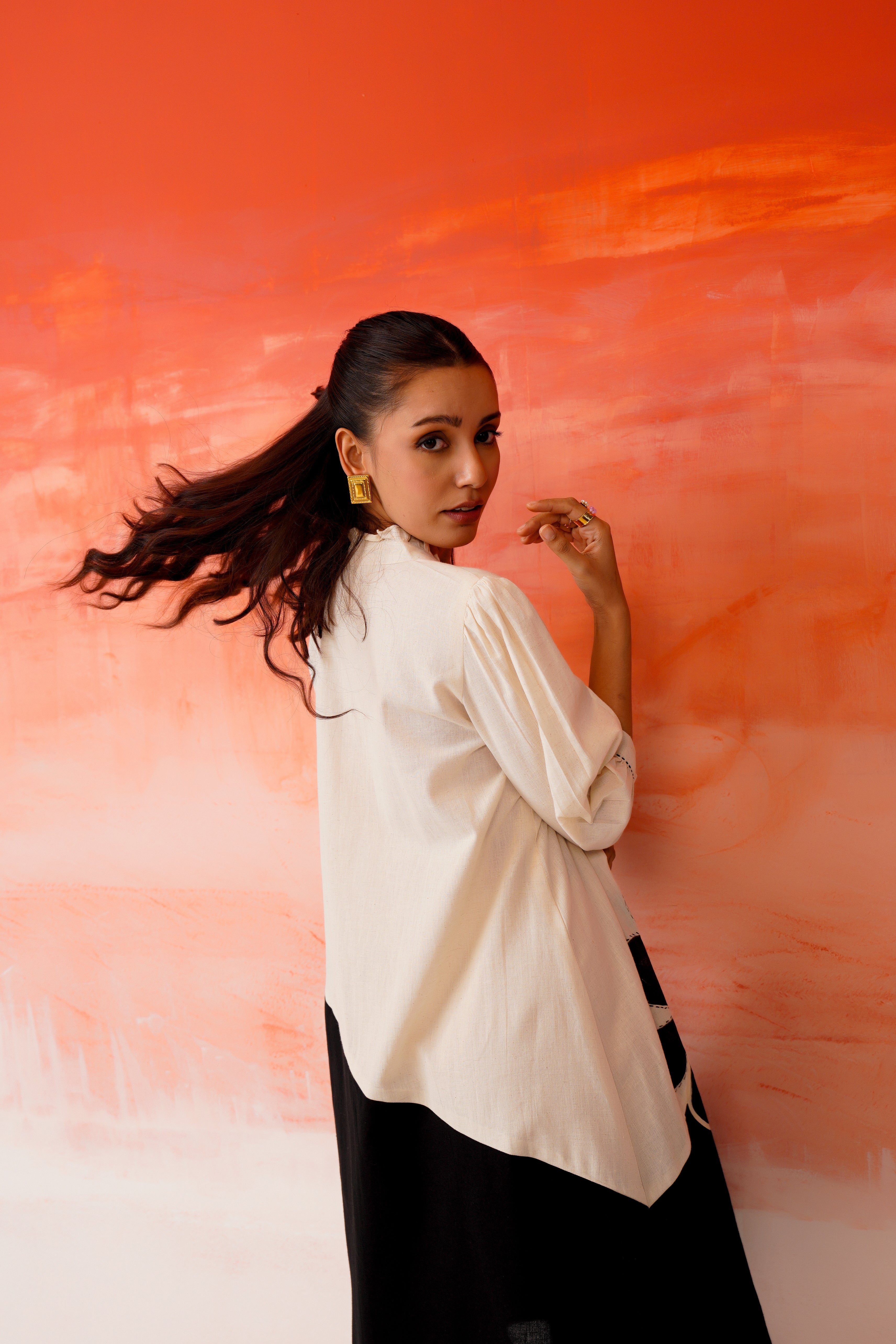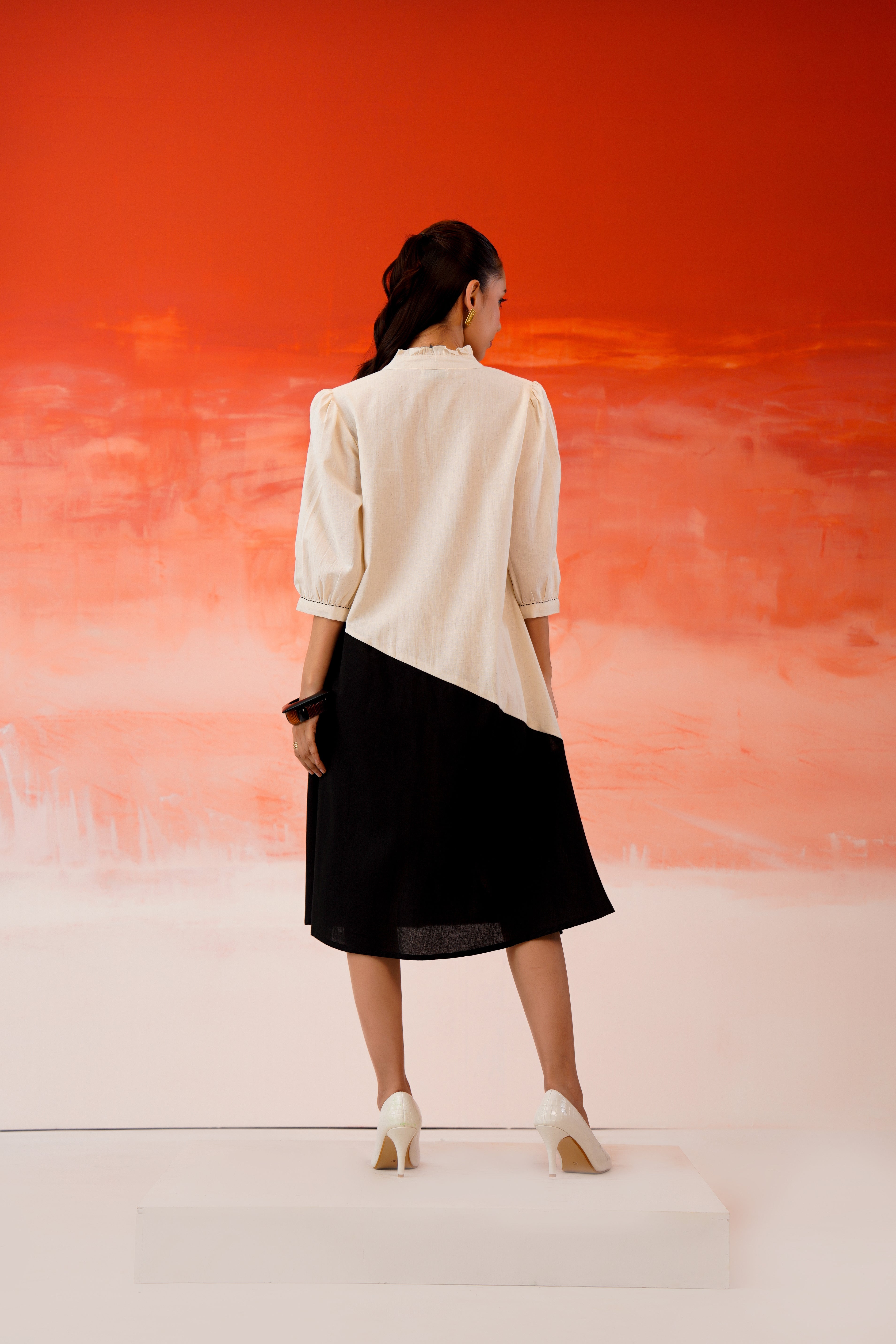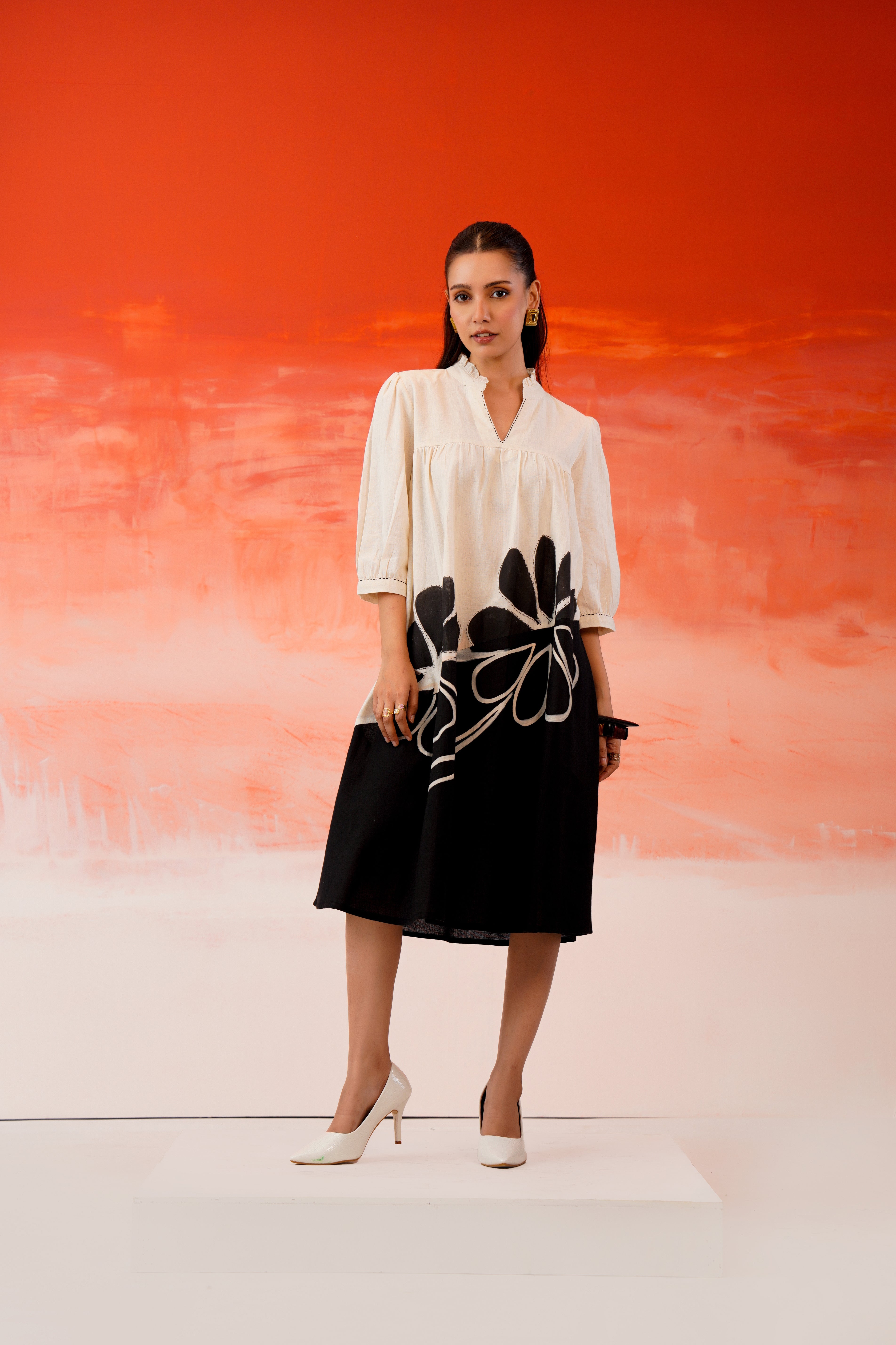 Refresh your everyday wardrobe with this white and black cotton midi A-line dress, designed for effortless comfort and visual impact. Crafted from breathable cotton, the dress features hand-painted and embroidered floral detailing that adds an artistic, contemporary touch to the silhouette.