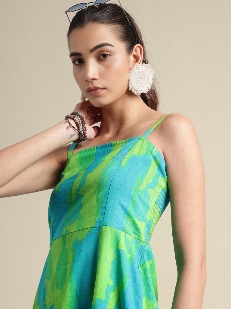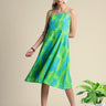 LIME & GREEN ABSTRACT COTTON TIE & DYE SLEEVELESS A LINE DRESS